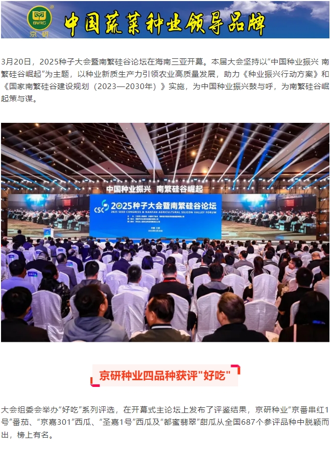 2025種子大會暨南繁硅谷論壇開幕,京研種業(yè)四品奪魁